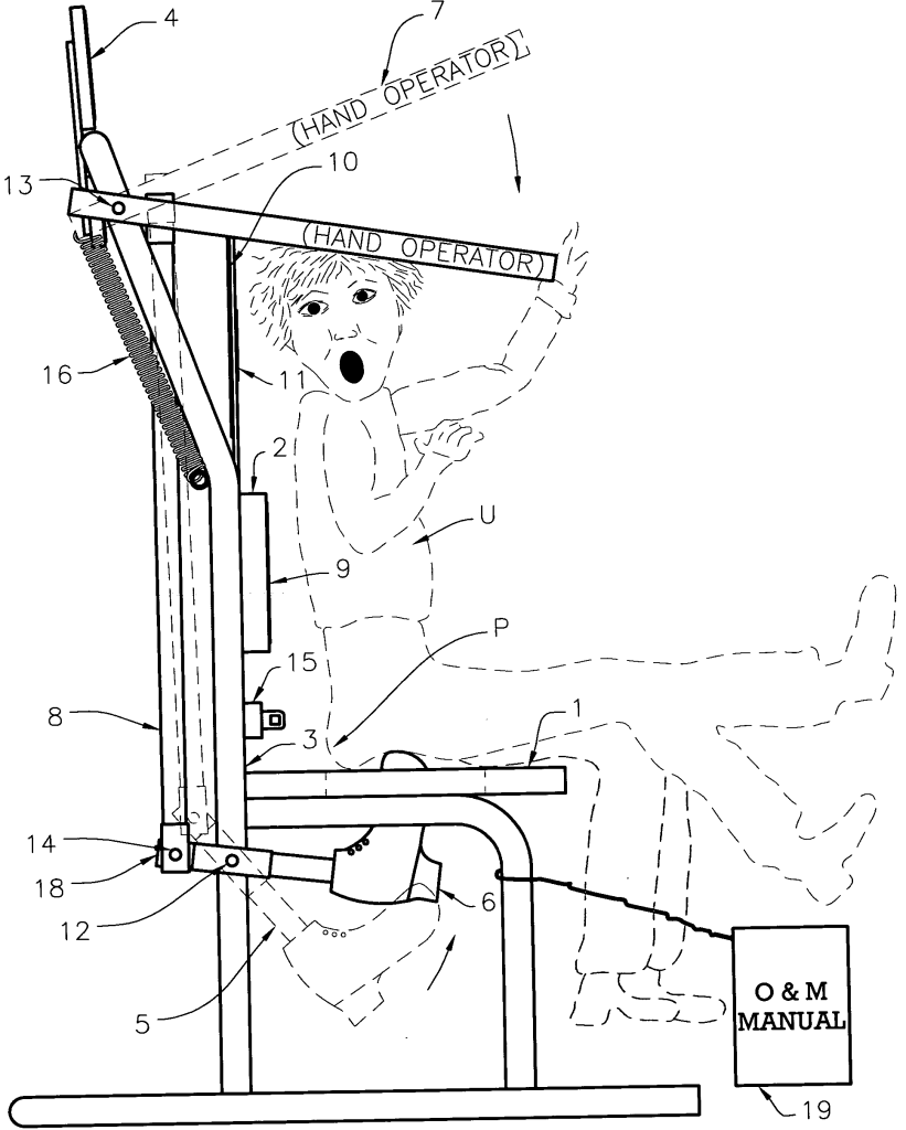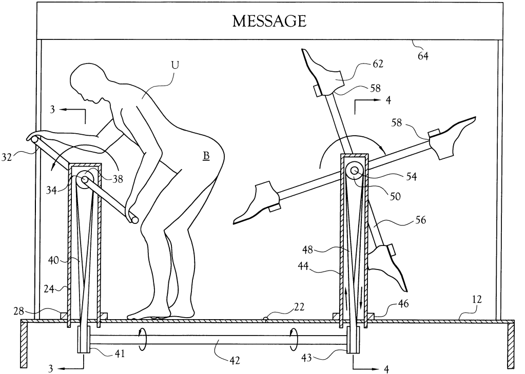 Further explorations of this specialized field of technology uncovered the “manually self-operated butt-kicking machine”: https://patents.google.com/patent/US20060094518A1