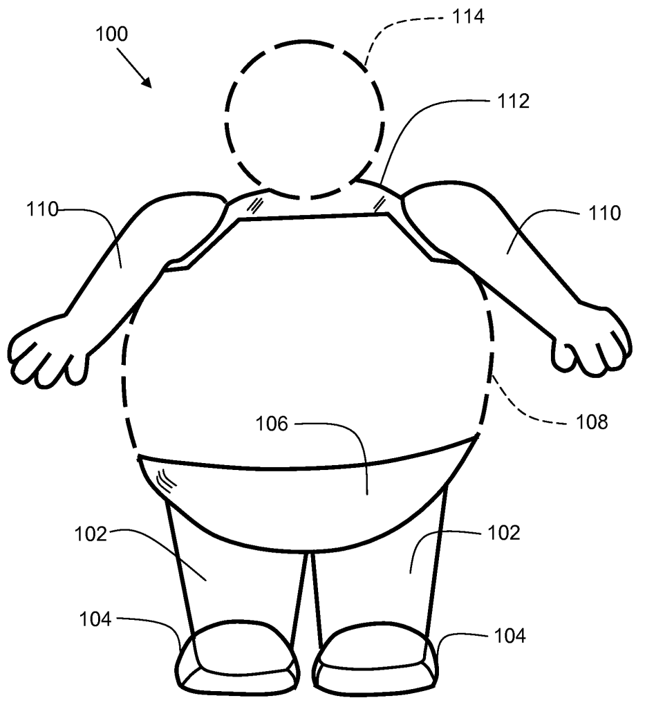 Here are some more details. The leg has a cavity (324) in the middle, which you pack with snow to provide added weight and stability. The foot has no sole, to allow drainage of the man’s melted snowflesh. Then there are the arms: