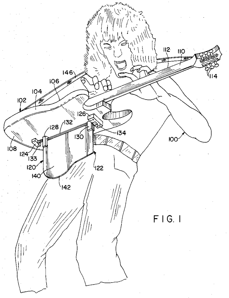 Rock and roll! Here are a couple of patents focusing on instrument supports. The concept is that the usual way of holding your instrument can limit your range of motion.