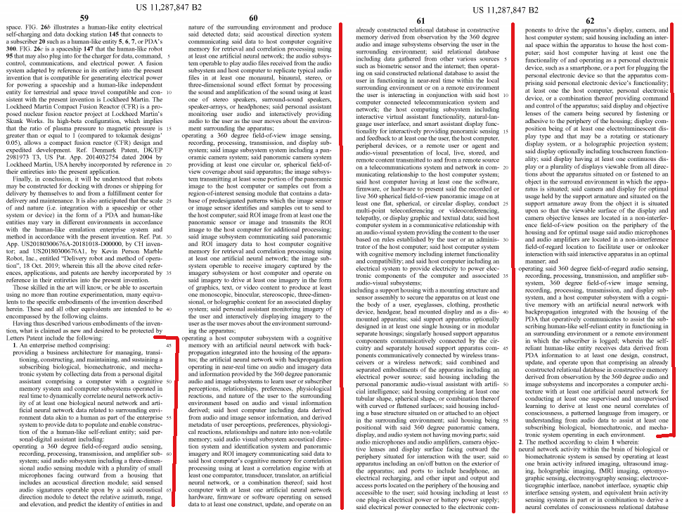 Whereas the patent discussed in my last post is still mired in the Patent Office, today’s patent has actually granted. This one is titled, Human-Like Emulation Enterprise System and Method, and it has been cited by such watchdog groups as the Organization of Mind Control Victims: