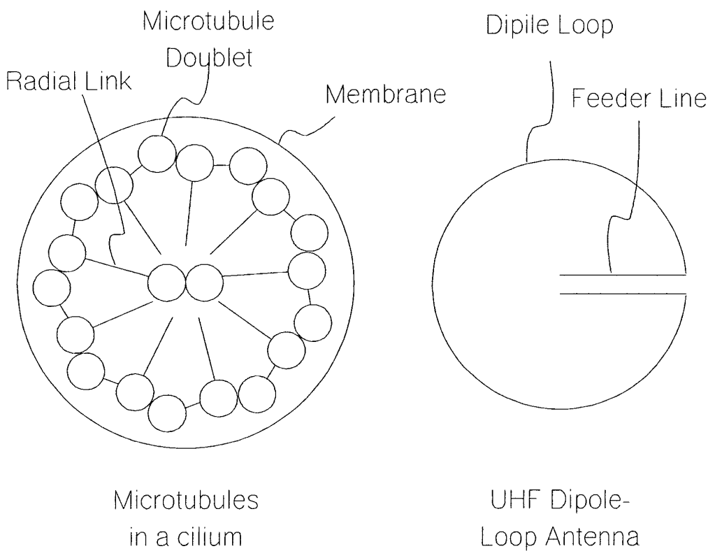 The application starts off with a description of quantum entanglement, before comparing microtubule structures in prehistoric urchins to antennas. It goes on to discuss a variety of physical effects, with occasional ties back to biological structures, and touches on prediction of the future, before circling back to quantum entanglement.